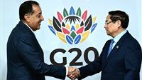 على هامش مشاركته نيابة عن الرئيس عبد الفتاح السيسي، رئيس الجمهورية، في قمة مجموعة العشرين (G20) لعام 2025 بمدينة "جوهانسبرج" في جنوب أفريقيا، التقى الدكتور مصطفى مدبولي، رئيس مجلس الوزراء، اليوم، فام مينه تشين، رئيس وزراء فيتنام، وذلك بحضور الدكتور بدر عبد العاطي، وزير الخارجية والهجرة وشئون المصريين بالخارج، والسفير أحمد علي شريف، سفير مصر في جنوب أفريقيا.