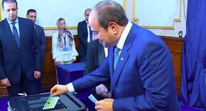 لحظة إدلاء الرئيس السيسي بصوته في انتخابات النواب