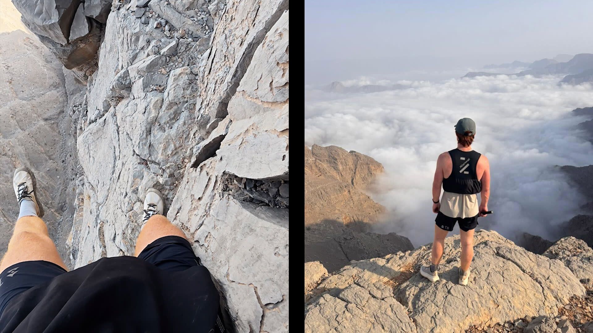 بالبلدي: على ارتفاع ألف متر.. شاهد مغامرًا يمشي على حواف جبل شاهق في الإمارات