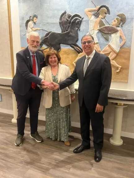 أكد نائب الوزير على الروابط التاريخية والثقافية التي تجمع بين شعوب مصر وقبرص واليونان، مثمناً القوة التي تتصف بها العلاقات الثلاثية بين الدول الثلاث وتطورها بشكل إيجابي على مختلف الأصعدة، كما أكد على مواصلة الدولة المصرية مساعيها نحو إحياء الروابط الاجتماعية والتاريخية للشتات مع كل من قبرص واليونان، وذلك من خلال تنظيم الفعاليات المشتركة والزيارات الجماعية، مشيراً إلى عزمه العمل، جنباً إلى جنب مع المسئولين في كل من قبرص واليونان، على تعزيز وتوسيع هذا المجال من التعاون المرتبط بشكل مباشر بملف الدبلوماسية العامة، حيث يأتي هذا الاجتماع في سياق الجهود التي تقوم بها مصر لتنشيط مبادرة "إحياء الجذور" (نوستوس)، والتي تم تدشينها منذ عدةً سنوات وفقاً لرؤية السيد رئيس الجمهورية، لاسيما في ضوء هدفها النبيل المتمثل في زرع بذور التعاون والارتباط بمصر بين الجيلين الثاني والثالث من أبناء وأحفاد الجاليات التي كانت تعيش في كل من مصر وقبرص واليونان.