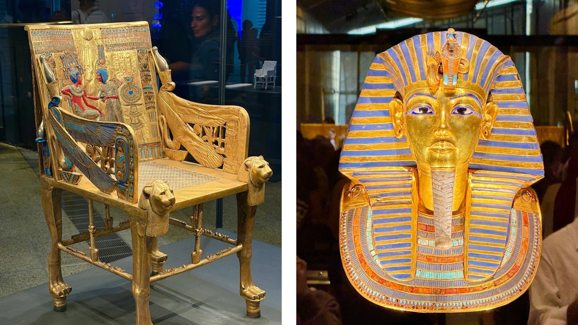 بالإضافة إلى قناع الملك توت عنخ آمون، المصنوع من الذهب، والذي يُعد أحد أشهر القطع الأثرية في العالم، تضم قاعات الخاصة بالملك الذهبي أكثر من 5 آلاف قطعة أثرية فريدة، غالبيتها تُعرض للجمهور لأول مرة، من بينها كرسي العرش الذهبي، والإكليل الملكي.