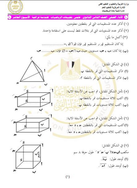 أسئلة تقييم الأسبوع العاشر الرياضيات العامة لغات الصف الثاني الثانوي