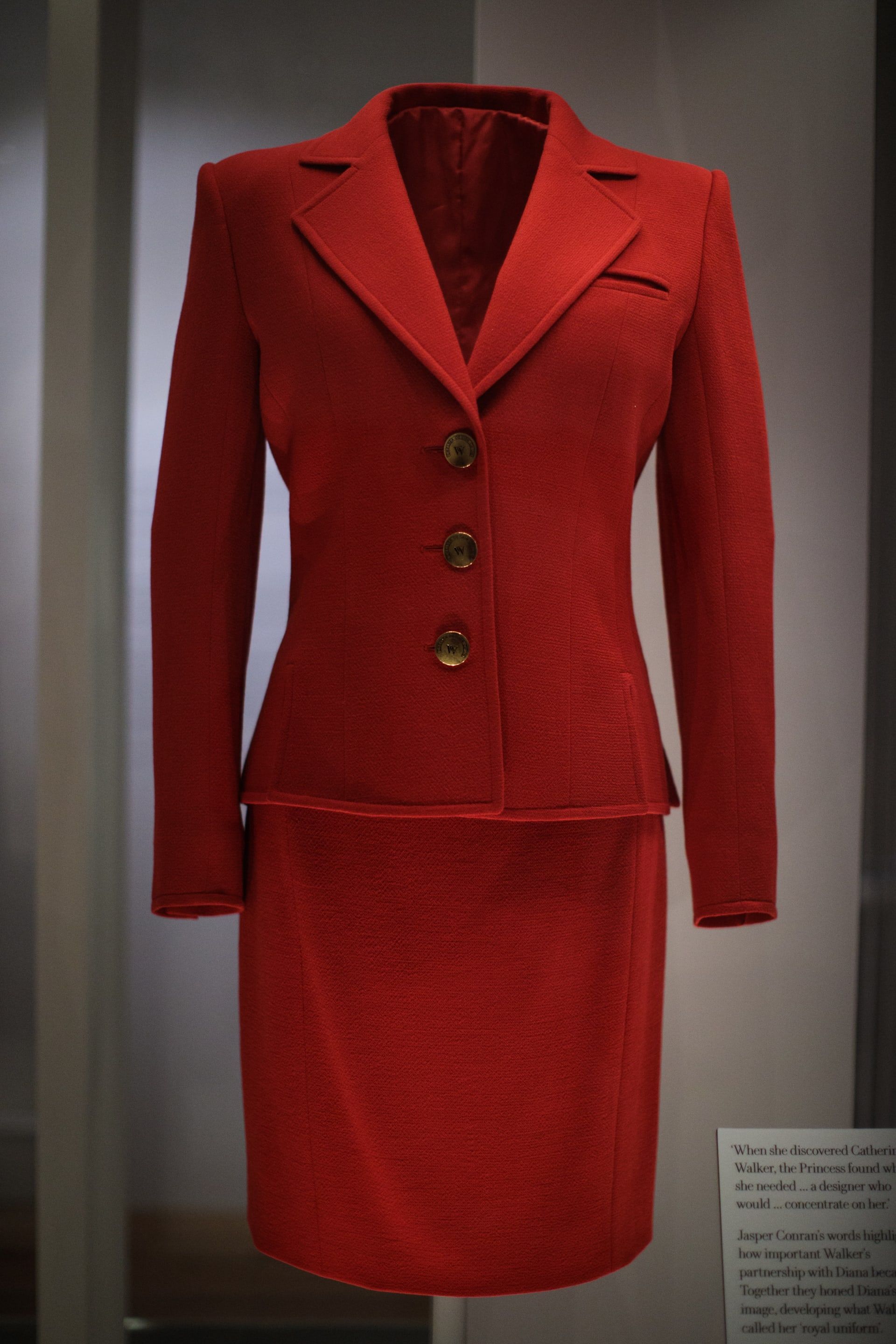 ارتدت الليدي ديانا عام 1996 البدلة الحمراء خلال إطلاق حملة مكافحة فيروس نقص المناعة المكتسبة في العاصمة البريطانية لندن، من تصميم كاثرين ووكر، لتؤكد قدرة البدلة الرسمية على الجمع بين السلطة والرقي.
