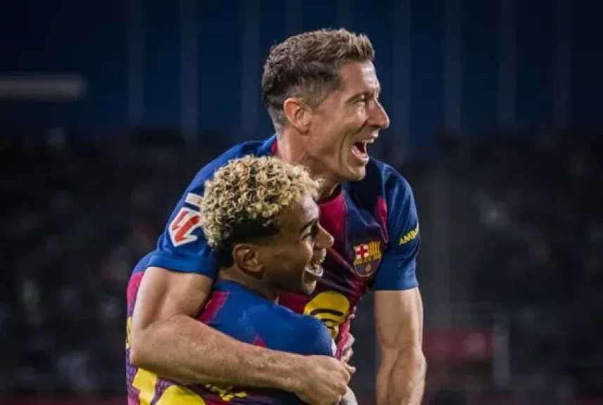 خط الهجوم: روبرت ليفاندوفسكي، لامين يامال، فيران توريس.