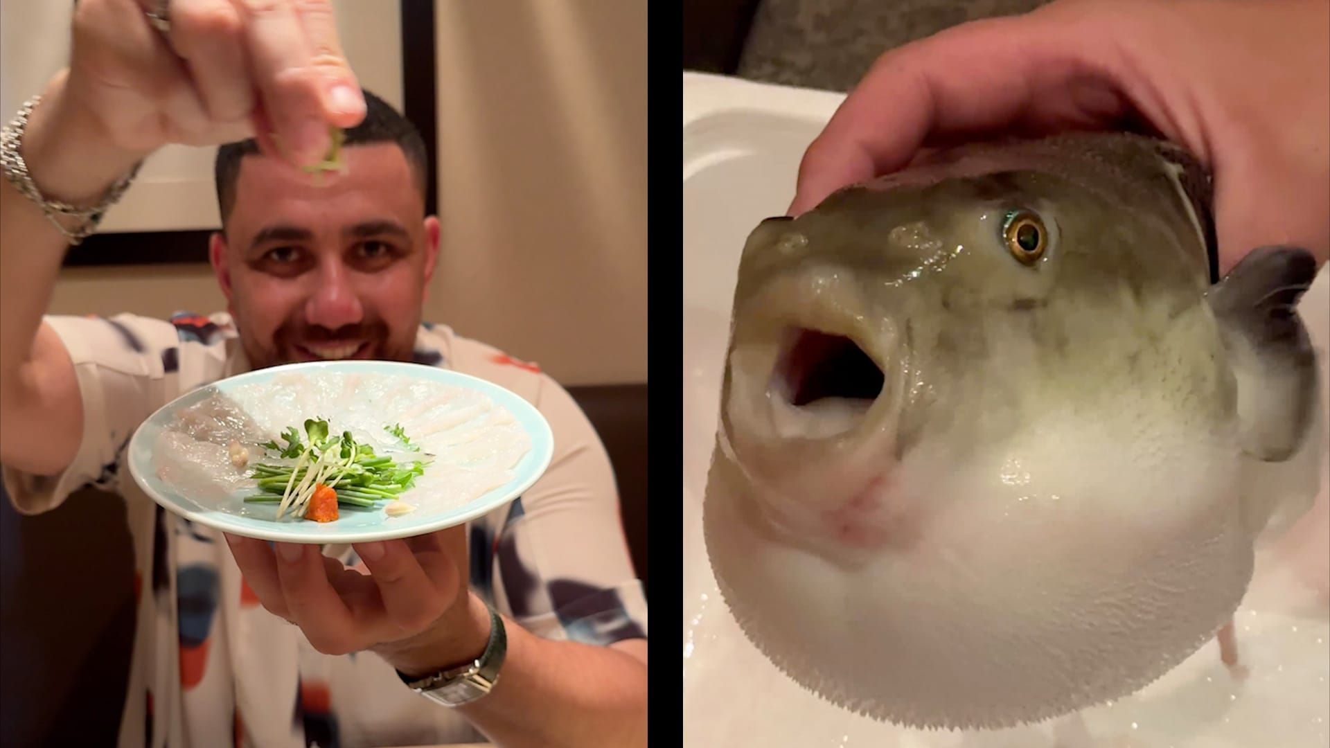 خلال رحلته إلى اليابان، جرّب الهادي تناول أحد أخطر أنواع الأسماك في العالم، والمعروفة باسم "سمكة فوغو"، أو "السمكة المنتفخة"(شاهد مقطع الفيديو أعلاه).